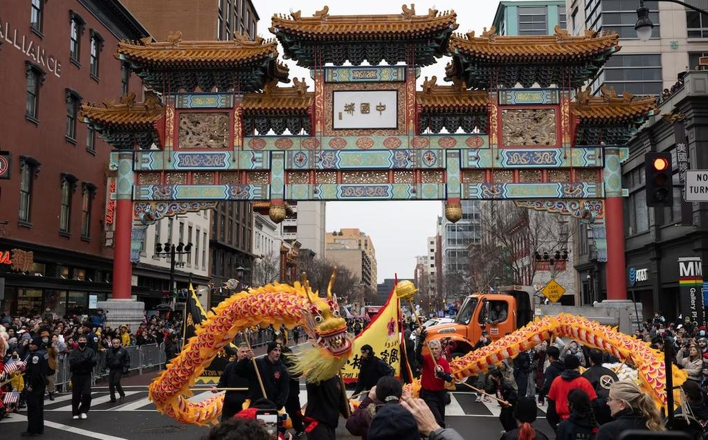 Múa lân mừng năm mới tại đường số 7 ở Chinatown tại D.C. hôm 22/1. Ảnh: Washington Post.