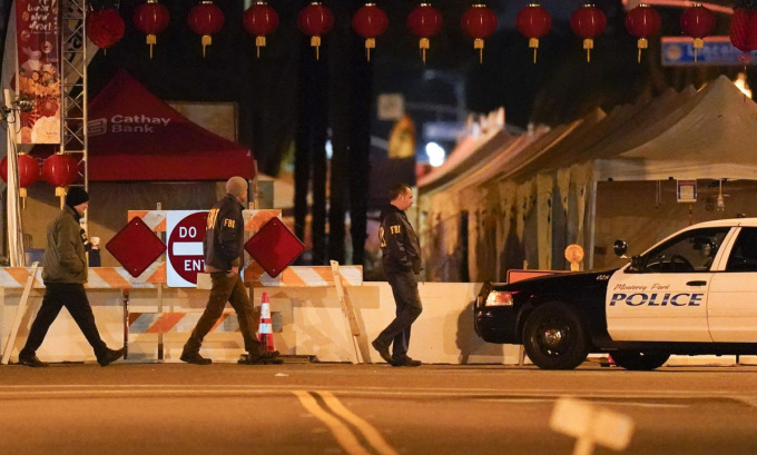 Đặc vụ FBI gần hiện trường vụ xả súng ở Monterey Park, bang California, Mỹ hôm 21/1. Ảnh: AP.