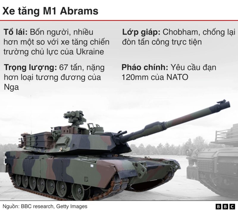 Tổng thống Hoa Kỳ Joe Biden cũng sẽ công bố lệnh chuyển cho Ukraine 30 chiếc Abrams 1, loại tăng hiện đại của Mỹ.