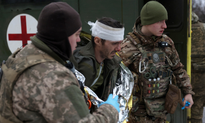 Thương binh Ukraine sơ tán khỏi Soledar hôm 14/1. Ảnh: AFP.