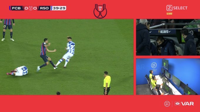 Bước ngoặt đến ở phút 38, khi cầu thủ hai đội tranh chấp quyết liệt ở giữa sân. Pablo Marin cắt bóng khiến Gavi nằm sân, rồi Sergio Busquets tắc bóng khiến Takefusa Kubo ôm chân đau đớn. Ngay sau đó, đến lượt Busquets nằm sân vì pha kê chân của Brais Mendez.