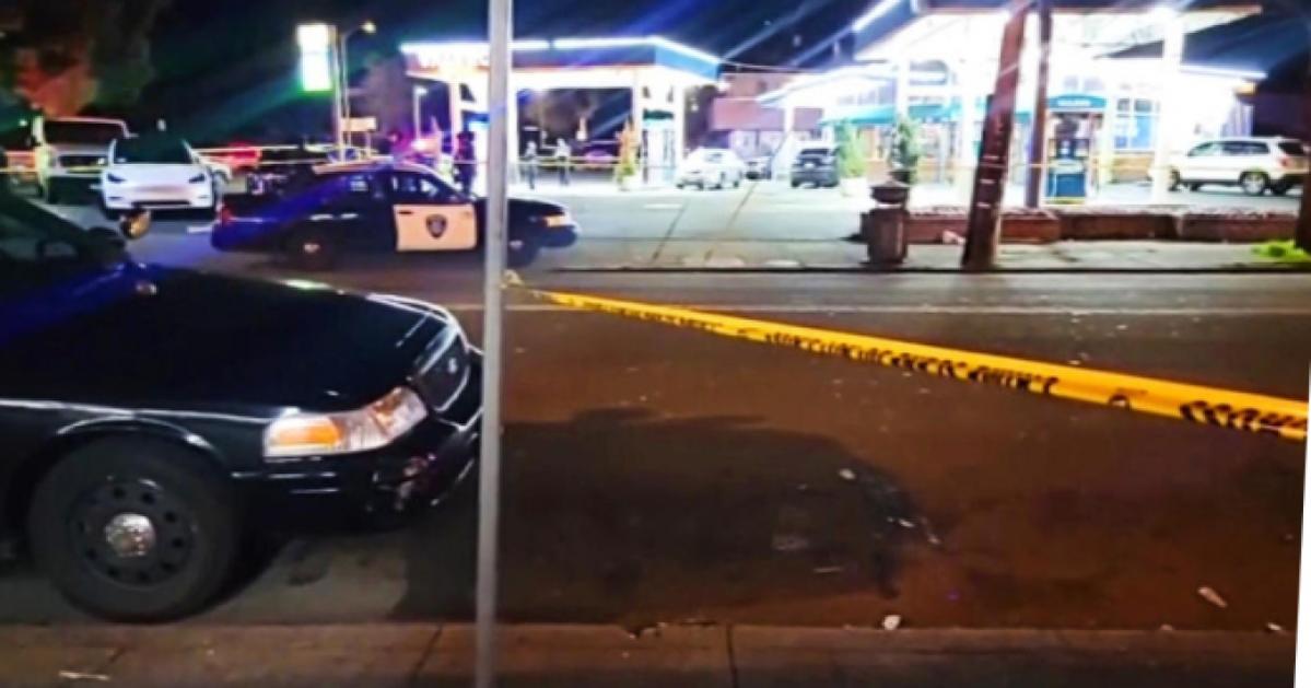 Hiện trường vụ nổ súng ở Oakland, bang California, Mỹ, ngày 24/1. Ảnh: CBS News.