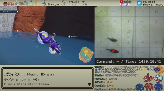 Công nghệ cùng với khả năng thành thạo của loài cá đã dẫn đến sự kiện bất ngờ diễn ra hồi đầu tháng 1. Mutekimaru đang livestream trò chơi Pokémon thì game bất ngờ gặp lỗi hệ thống và bảng điều khiển trở lại màn hình chính. Khi đó, game thủ chọn rời màn hình và nghỉ ngơi.