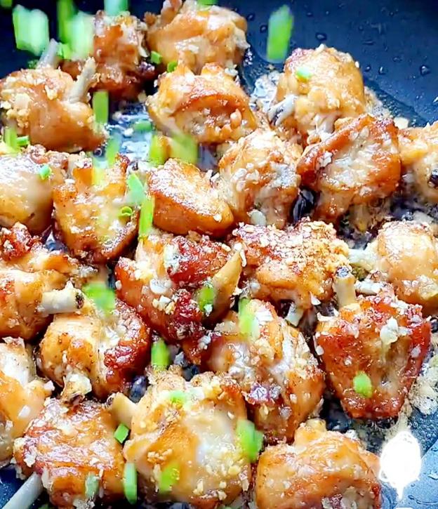 Bạn đảo thật nhanh và đều tay cho tỏi băm bám đều vào các miếng cánh gà thì trút cánh gà ra đĩa, rắc lên chút hành lá xắt nhỏ để trang trí. Món cánh gà trộn tỏi này ăn rất thơm ngon, dậy vị. Công thức do Machine và bạn đọc Gia đình và Xã hội chia sẻ. Chúc các bạn thành công và ngon miệng!