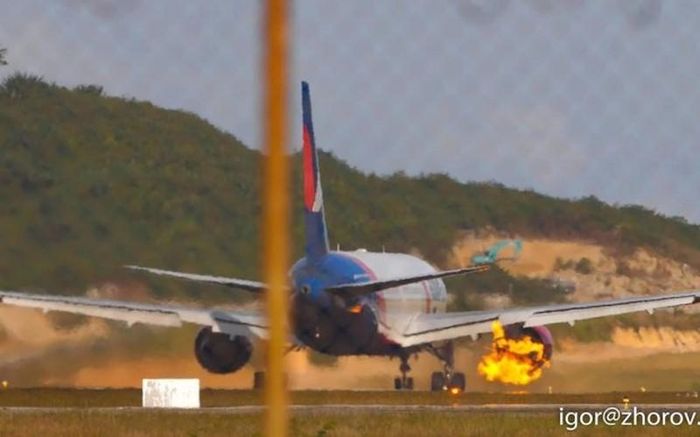 Những hình ảnh và cảnh quay cho thấy chiếc máy bay Nga bất ngờ bốc cháy khi nó băng qua đường băng. Các hành khách cho biết đã nghe thấy một tiếng nổ và tiếng kêu răng rắc trước khi máy bay bốc cháy. Khi rời máy bay, các hành khách nhìn thấy phần càng hạ cánh của máy bay bị hư hại.