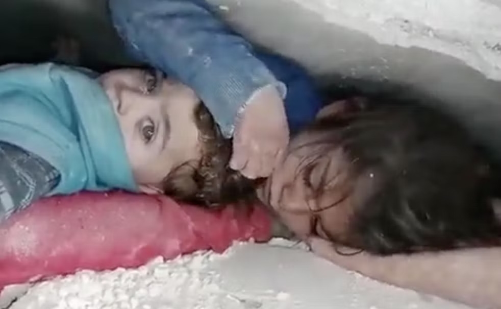 Mohamad Safa, đại diện của tổ chức phi chính phủ Patriotic Vision tại Liên Hợp Quốc, viết trên Twitter ngày 7/2 rằng: "Bé gái 7 tuổi để tay trên đầu cậu em nhỏ để bảo vệ bé khi cả hai kẹt dưới đống đổ nát". Safa kêu gọi mọi người chia sẻ hình ảnh nhằm thắp lên hy vọng cho nhiều người trong những vùng bị ảnh hưởng do thảm kịch động đất ngày 6/2.