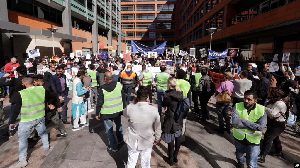 Hàng trăm người biểu t́nh tập trung bên ngoài văn pḥng Bộ Di trú ở Sydney, Úc, vào ngày 12/8/2019. Cuộc biểu t́nh nhằm nêu bật tương lai không chắc chắn của nhiều người tị nạn kể từ khi Úc thay thế thị thực bảo vệ vĩnh viễn bằng thị thực tạm thời.