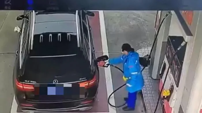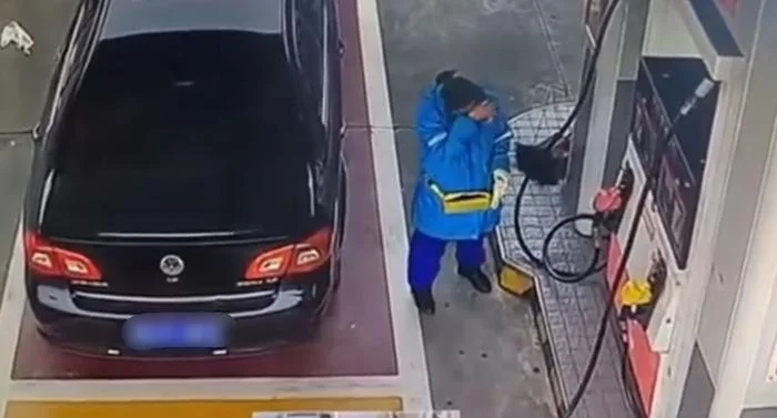 Sự việc xảy ra tại một cây xăng ở Trung Quốc và đã được camera giám sát ghi lại.