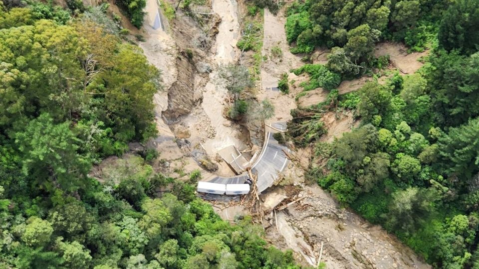 Một tuyến đường bị phá hủy sau băo Gabrielle. Ảnh: CNN.