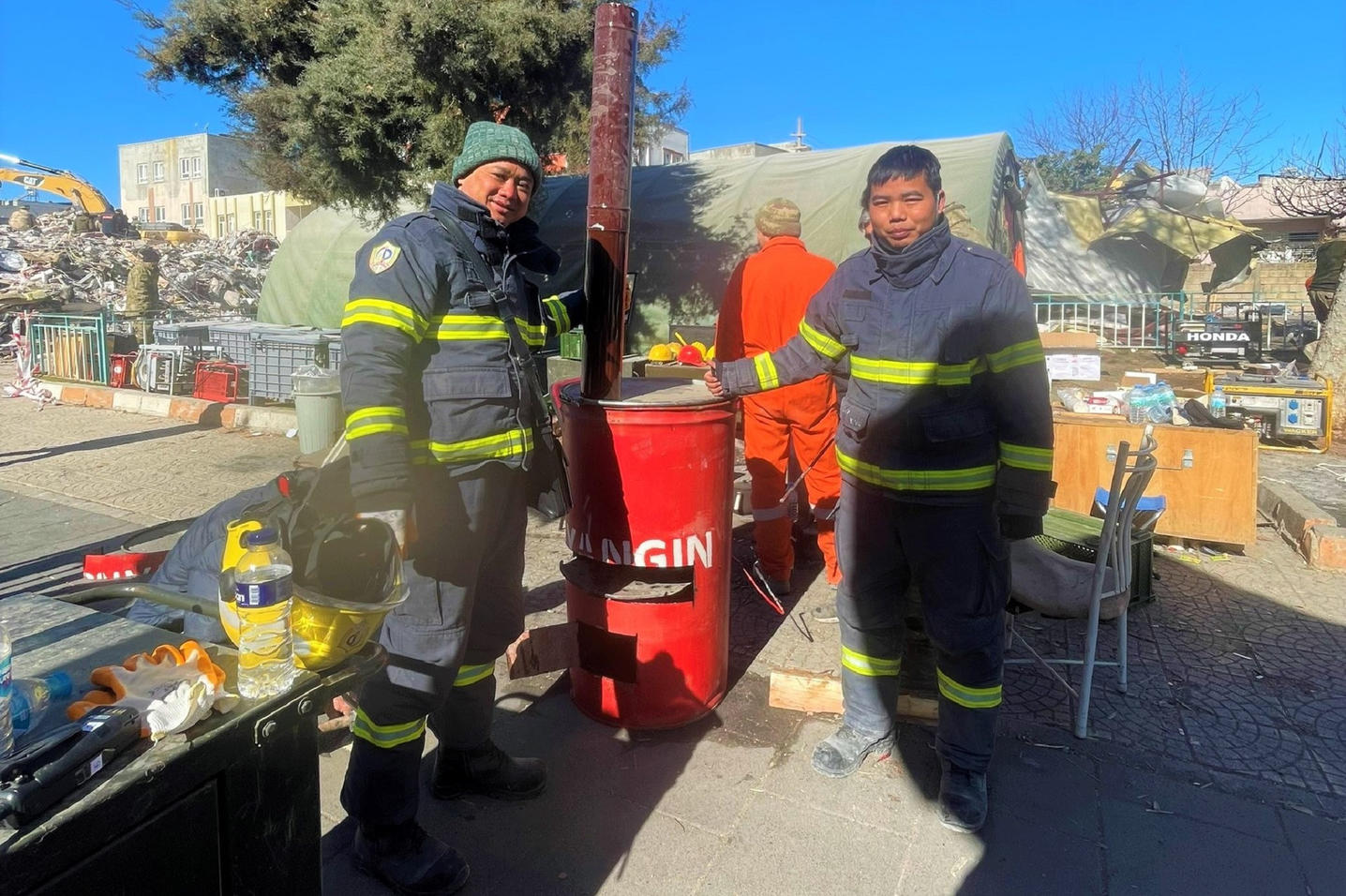 Để chống chọi với giá rét, nhiệt độ dao động từ -6 đến -10 độ C, lực lượng cứu nạn của quân đội Thổ Nhĩ Kỳ đă nhờ Đoàn cứu nạn quốc tế của Bộ Công an Việt Nam chế tạo bếp lửa dă chiến.