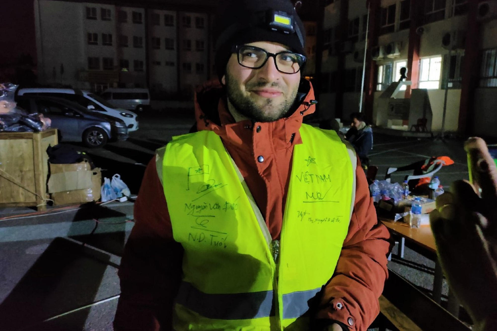 Anh Aesirl khoe chiếc áo có chữ kư của Đoàn cứu nạn quốc tế Việt Nam (Ảnh: Cục Cảnh sát PCCC&CNCH)