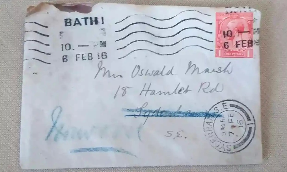Một lá thư bị thất lạc vào năm 1916 cuối cùng đã được gửi đến một địa chỉ ở London từ Bath sau hơn 100 năm.