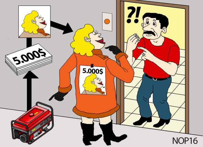 Khi Matveich đi làm về, thấy trong thùng thư có mảnh giấy ghi: “Nếu mai không để 5.000 rúp vào dưới gầm máy phát điện thì đừng mong được nhìn thấy vợ anh nữa”.