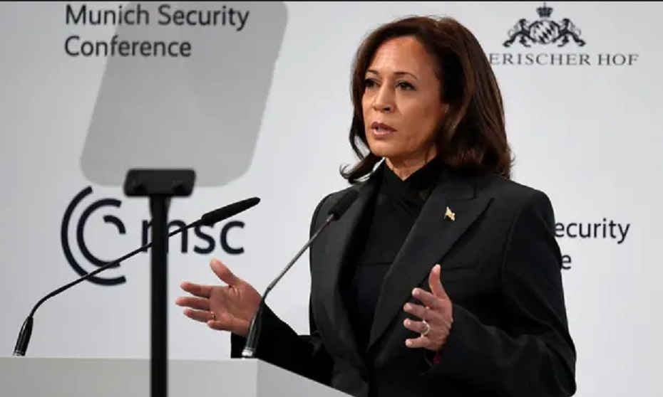 Phó tổng thống Mỹ Kamala Harris phát biểu tại Hội nghị An ninh Munich ở Đức vào ngày 18/2. Ảnh: AFP.