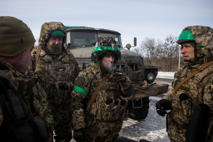 Lính Ukraine ở ngoại ô thành phố tiền tuyến Bakhmut, tỉnh Donetsk hôm 13/2. Ảnh: Reuters.