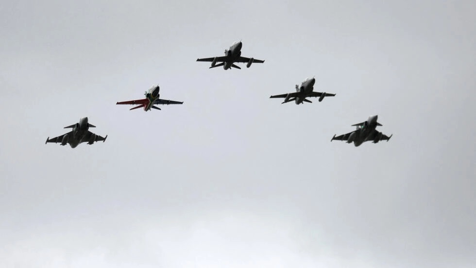 Các máy bay phản lực của Lực lượng Không quân Nam Phi bay theo đội hình vào Ngày Lực lượng Vũ trang, trước cuộc tập trận với hải quân Nga và Trung Quốc ở Vịnh Richards, Nam Phi, ngày 21/02/2023. REUTERS - ROGAN WARD