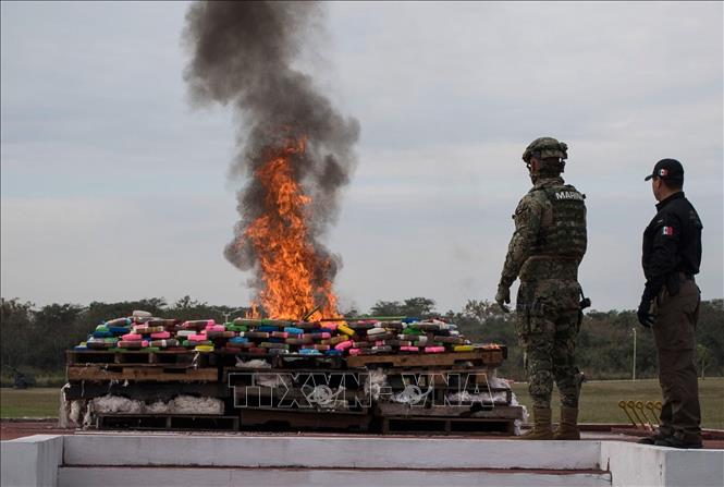 Lực lượng phòng chống ma túy Mexico thiêu hủy số ma túy thu giữ tại thành phố Veracruz, ngày 16/1/2018. Ảnh minh họa: AFP