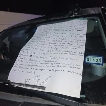 Bức thư của băng đảng gửi cho cảnh sát Mexico với lời xin lỗi về vụ bắt cóc 4 người Mỹ hôm 3/3. Ảnh: Federal Ministerial Police.