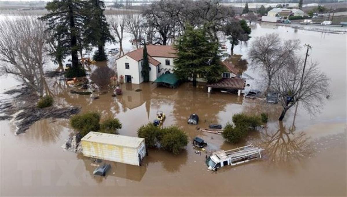 Cảnh ngập lụt sau những trận mưa lớn do ảnh hưởng của bão tại Gilroy, California, ngày 9/1/2023. Ảnh: AFP