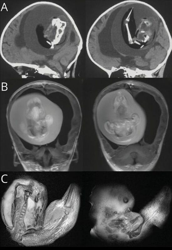 Bác sĩ cho biết thai trong thai là hiện tượng cực kỳ hiếm gặp, thế giới chỉ ghi nhận 200 ca, trong đó 19 trường hợp bào thai cư trú ở não. Hội chứng này cũng xảy ra ở xương chậu, miệng và bộ phận sinh dục.