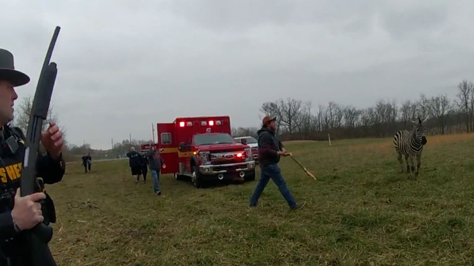 Camera gắn trên người một cảnh sát cho thấy một người đàn ông đuổi con ngựa vằn bằng cây gậy lớn. Sau khi giữ khoảng cách trong khoảng một phút, con vật di chuyển về phía các cảnh sát. Một cảnh sát phó đã bắn chết con ngựa vằn.