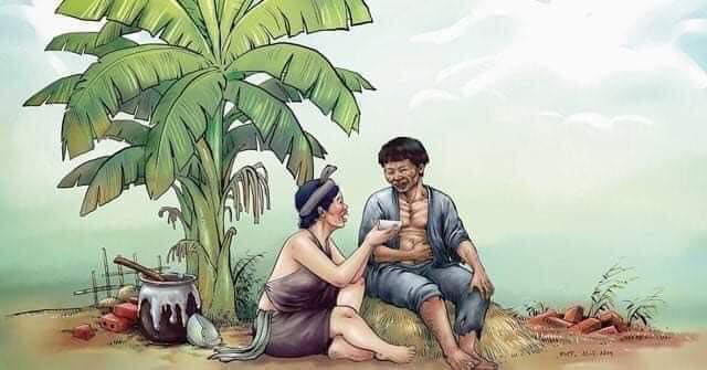 Chị Dậu cắp rá đi vay gạo ngang qua, hớt hải chạy vào: "Cụ ơi, cụ xin cho con ra với, con khố rách áo ôm, không trung hậu đảm đang để nuôi chồng con nên không xứng làm gương cho ai đâu. Cụ giúp con với nhé".