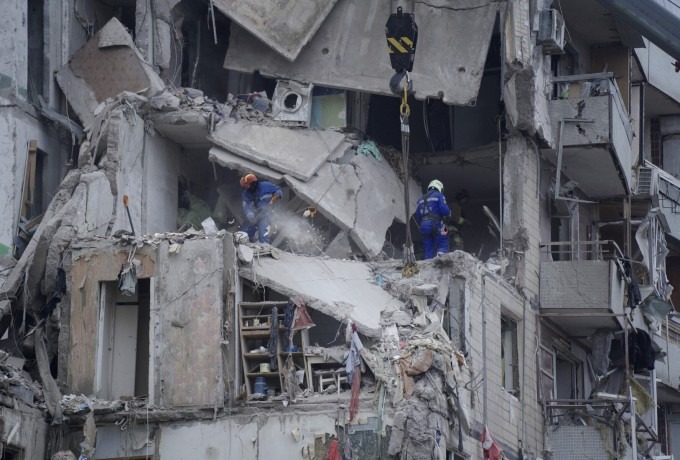 Lực lượng cứu hộ tìm kiếm người sống sót trong chung cư bị tập kích ở Dnipro, miền trung Ukraine, hồi tháng 1. Ảnh: AFP.