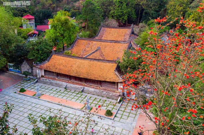 Cứ vào độ tháng 3, những cây hoa gạo ở Chùa Thầy (xã Sài Sơn, huyện Quốc Oai, Hà Nội) lại bung nở, làm nên nét đẹp riêng cho ngôi chùa.