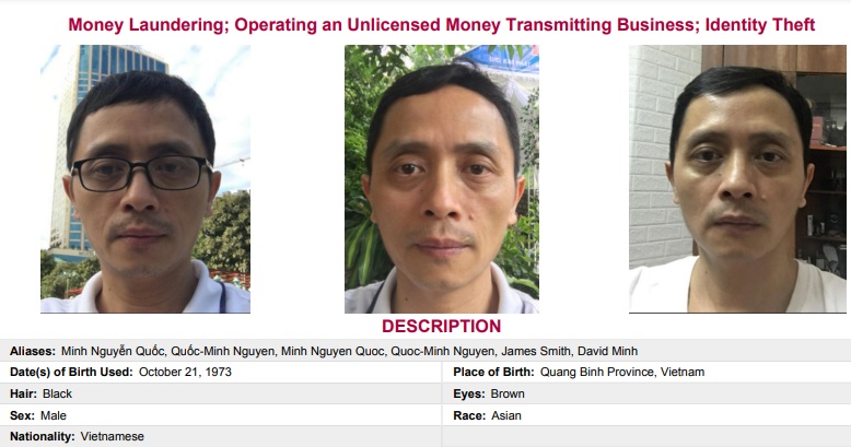 Hôm 16/3, Cục Điều tra liên bang Mỹ (FBI) đã thông tin việc truy nã một kỹ sư quốc tịch Việt Nam có tên Nguyễn Quốc Minh vì tội rửa tiền, điều hành một doanh nghiệp chuyển tiền không có giấy phép và đánh cắp danh tính.