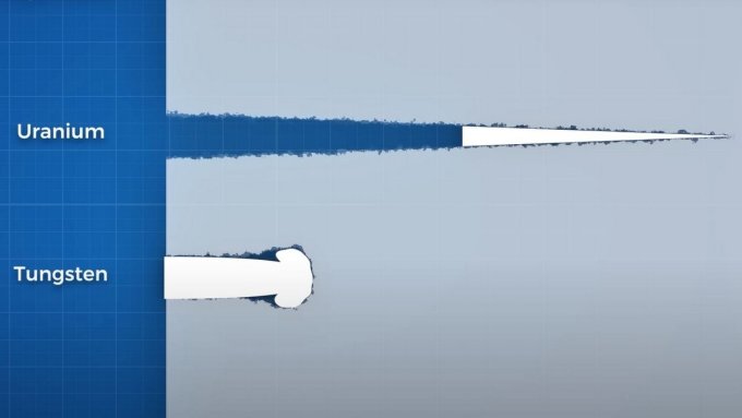 Minh họa về khả năng xuyên phá của đạn DU (trên) và đạn volfram (dưới). Đồ họa: Real Engineering.
