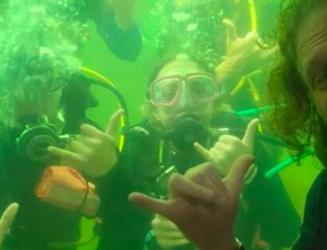 Joseph Dituri đang chụp ảnh với các thợ lặn trẻ tuổi tới thăm khách sạn của ông ở Florida (Ảnh: Courtesy of The South Florida)