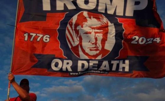Một người giương cờ ủng hộ ông Trump. Ảnh: CNN
