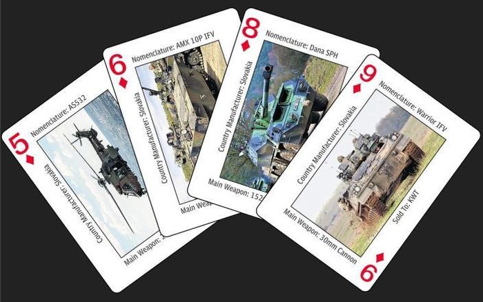 Theo tờ New York Times, đó chính là một bộ bài có thiết kế đặc biệt, có 52 lá bài in hình ảnh của các loại xe tăng, xe bọc thép chở quân, xe tải, pháo, các hệ thống vũ khí khác do NATO sản xuất, cùng với hai quân bài phăng teo.