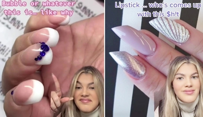Sophie Randall đăng tải trên TikTok đoạn clip với nội dung: "Những mẫu nail chỉ nên thuộc về năm 2000".