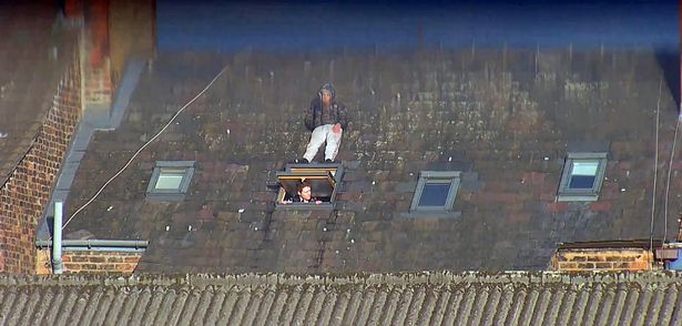 Nghi phạm khéo léo trèo lên mái nhà để trốn cảnh sát (ảnh: Mirror)