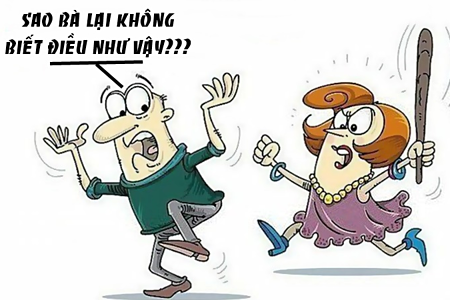 - Vậy mà hôm qua, tôi báo tin sắp được làm bố một đứa bé nữa. Cô ta lại đập cái xoong vào đầu tôi. Đúng là quá đáng mà!