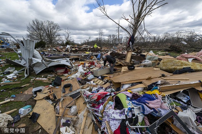 Tại Rolling Fork, Mississippi, Mỹ, người dân dọn dẹp đống đổ nát sau trận lốc xoáy kinh hoàng.