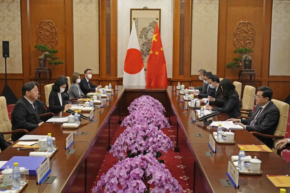 Phái đoàn ngoại giao Nhật Bản và Trung Quốc gặp nhau tại Bắc Kinh ngày 2/4. Ảnh: Kyodo/Japan Today.