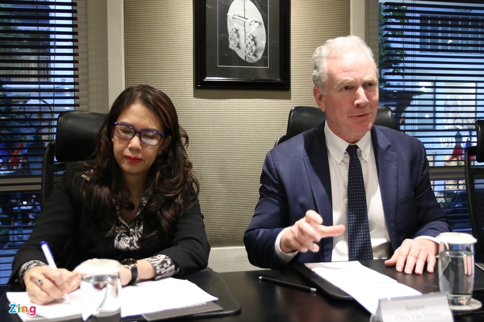 “Chúng tôi muốn tiếp nối những sự trao đổi thực chất giữa Việt Nam và Mỹ trên một loạt vấn đề, từ kinh tế, văn hóa tới an ninh”, Thượng nghị sĩ Chris Van Hollen nói trong buổi gặp gỡ báo chí vào chiều 8/4 tại Hà Nội. “Tôi tỉn rằng chúng tôi có sự ủng hộ mạnh mẽ ở quốc hội để tiếp nối những chương trình ấy”.