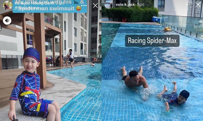 Mới đây nhất, nữ MC cùng Jack dành thời gian cuối tuần để cùng đưa con trai nhỏ đi bơi. Cả hai vui vẻ đăng tải những khoảnh khắc hạnh phúc của nhóc tỳ nhưng không nhắc đến đối phương.