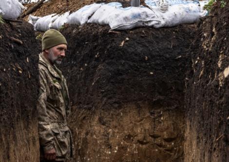 Một người lính Ukraine trong chiến hào ở Donetsk ngày 9/4/2023. Ảnh: Washington Post