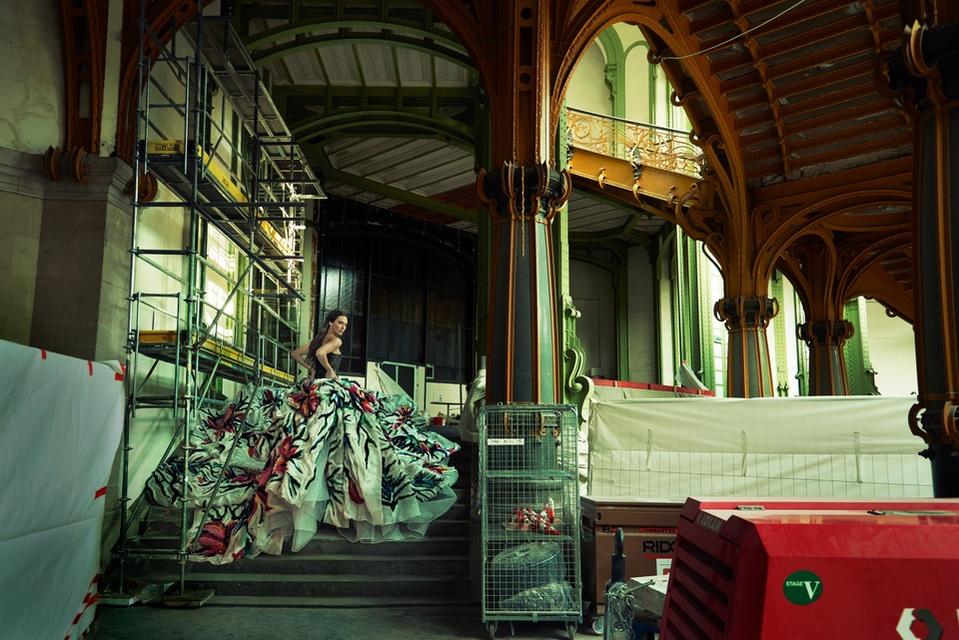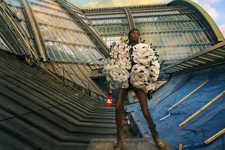 Vogue tung ra bộ ảnh chụp 10 người mẫu diện trang phục lấy cảm hứng từ "ông hoàng Chanel" Karl Lagerfeld. Các mẫu đầm được thực hiện bởi những nhà thiết kế đình đám. Trong khung cảnh đang sửa chữa của bảo tàng Grand Palais - sân khấu kinh điển thương hiệu Pháp - người mẫu Anok Yai diện sơ mi trắng được đính những bông hoa bản to, lông vũ. Thiết kế do giám đốc sáng tạo của Valentino Pierpaolo Piccioli thiết kế.