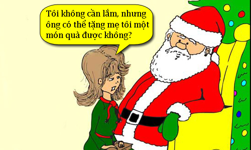 - Tặng quà cho mẹ, cô thật sự rất chu đáo – không cần nghĩ ngợi, ông già Noel mỉm cười nói tiếp – Tặng bà đấy một người con rể được không?