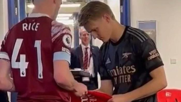 Old  Default Khoảnh khắc Odegaard tặng chữ ký cho Declan Rice