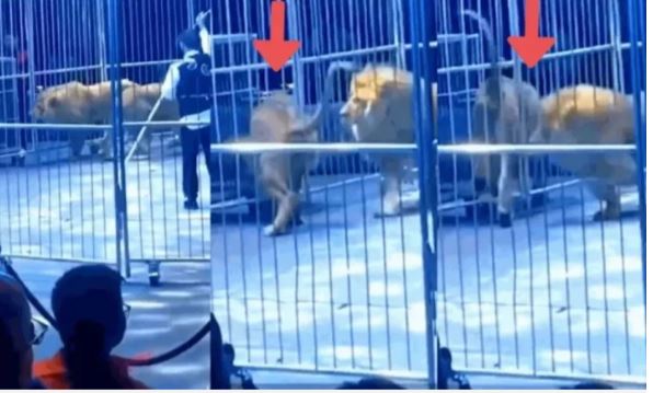 Hai con sư tủ lọt ra khỏi lồng bảo vệ khi đang biểu diễn trong rạp xiếc.