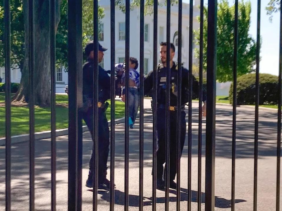 Các nhân viên mật vụ đưa một cậu bé ra khỏi khuôn viên Nhà Trắng trên đại lộ Pennsylvania ở Washington vào ngày 18/4. Ảnh: Nancy Benac/AP.