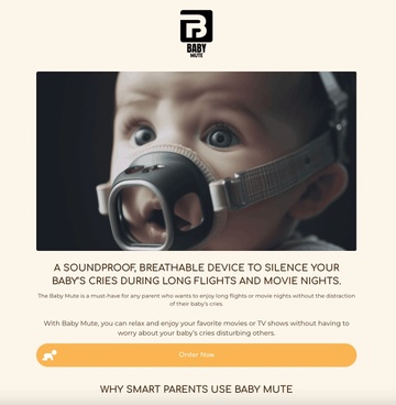 Đó là nội dung mô tả một sản phẩm mới được tung ra thị trường vừa qua, có tên là “Baby Mute”. Sản phẩm, được thiết kế giống chiếc rọ mõm dành cho động vật, hứa hẹn sẽ “giữ em bé yên lặng trong các chuyến bay dài và những đêm xem phim” bằng cách che miệng trẻ sơ sinh và át tiếng ồn của chúng, New York Post đưa tin.