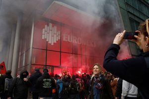 Cụ thể, khoảng 200-300 người biểu tình mang theo cờ công đoàn, đã xông vào sảnh của sàn giao dịch, pháo sáng của họ khiến tòa nhà bốc khói đỏ và kích hoạt chuông báo động.