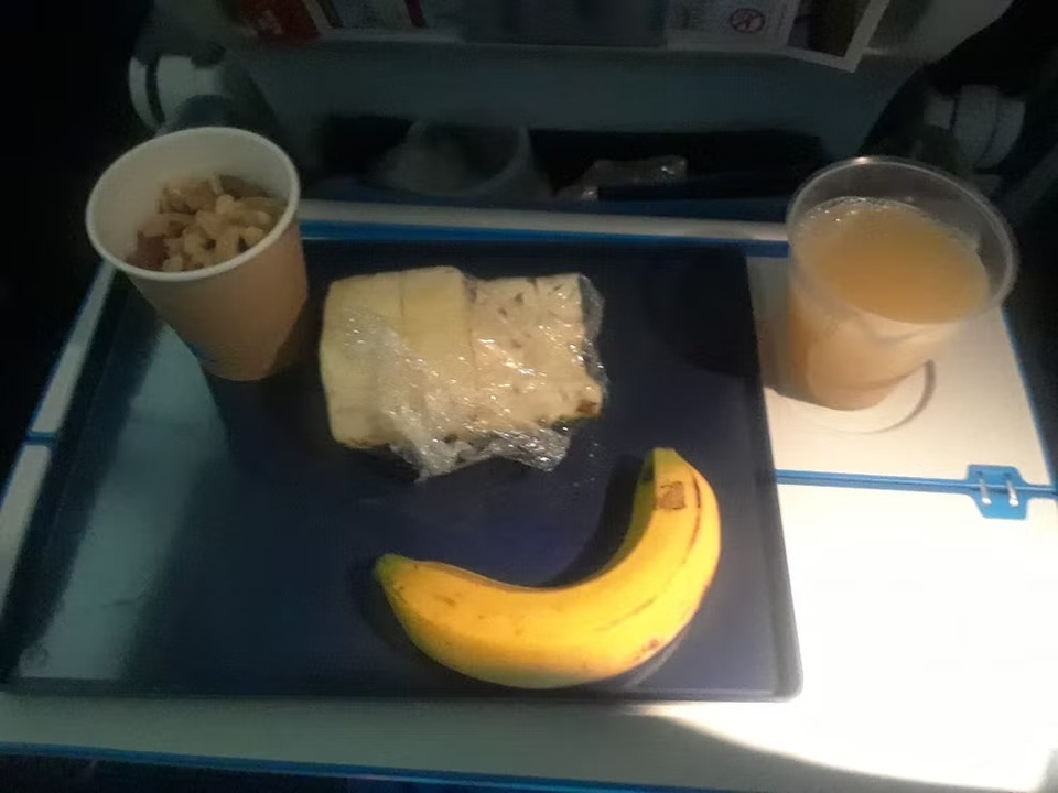 Vài giờ sau, cô cho hay phi hành đoàn đưa cho cô một gói thuần chay nguội, một quả chuối và thêm cốc hạt.