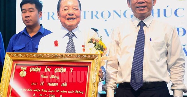 Kỉ niệm ngày sinh lãnh tụ cộng sản Hồ Chí Minh năm nay, 19.5.2023, tuyên giáo thành Hồ tổ chức trao huy hiệu đảng cho đảng viên. Báo chí, đài phát thanh, đài truyền hình ồn ào đưa tin, đưa hình: “Chiều 19-5, Quận ủy, UBND, Ủy ban Mặt trận Tổ quốc Việt Nam quận 3 tổ chức lễ kỷ niệm 133 năm Ngày sinh Chủ tịch Hồ Chí Minh, 112 năm Ngày Bác Hồ ra đi tìm đường cứu nước và trao huy hiệu đảng cho các đảng viên đợt 19-5... Trong số các đảng viên nhận huy hiệu đảng đợt này có nguyên bí thư Thành ủy TP.HCM Lê Thanh Hải nhận huy hiệu 55 tuổi”.